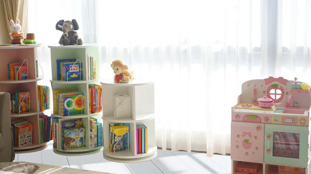 - Revolving Bookcase está hecho de MDF (fibra de densidad media).